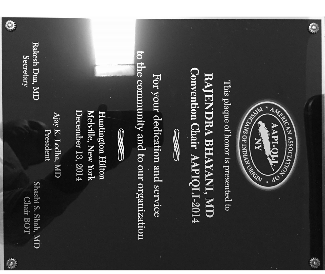 American Association of Physicians of Indian Origin Honor Award as Convention Chair