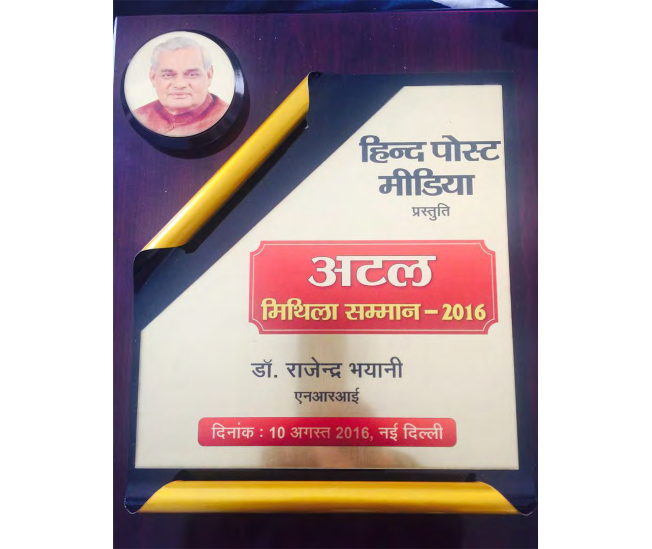 Atal Mithila Samman Delhi2016Hind Post & Mithiala SamajWelfare of Indian Community in USA and India