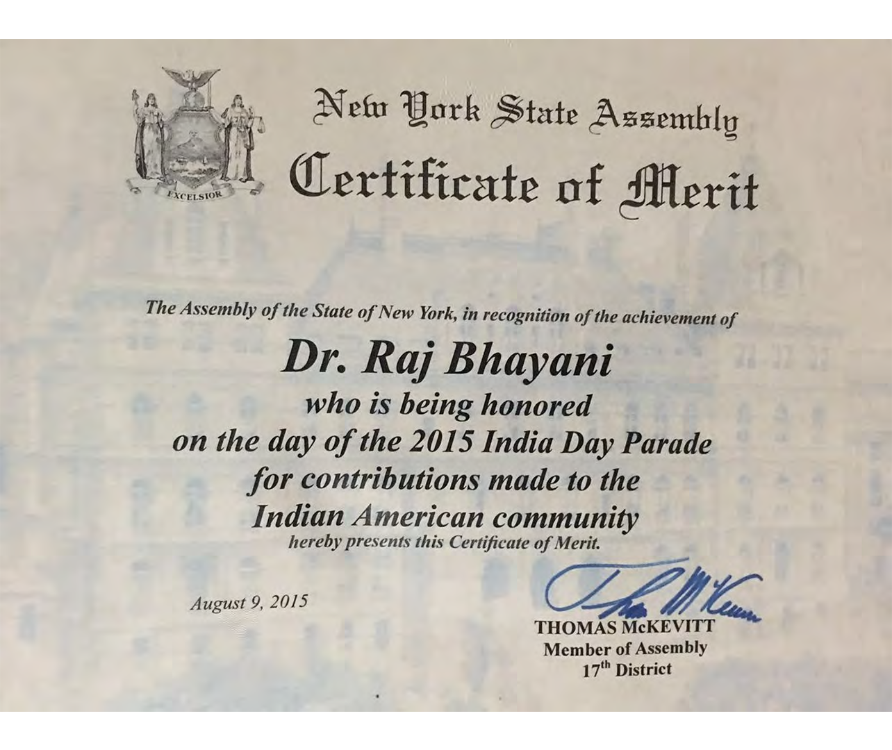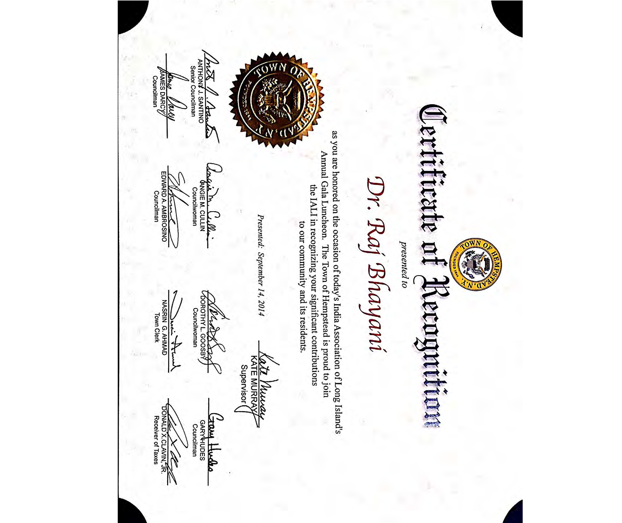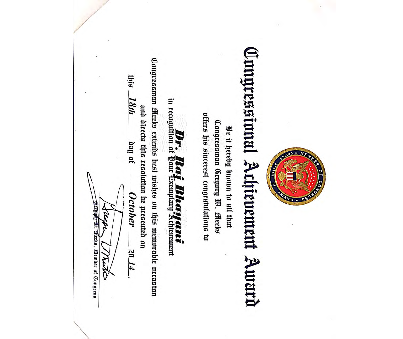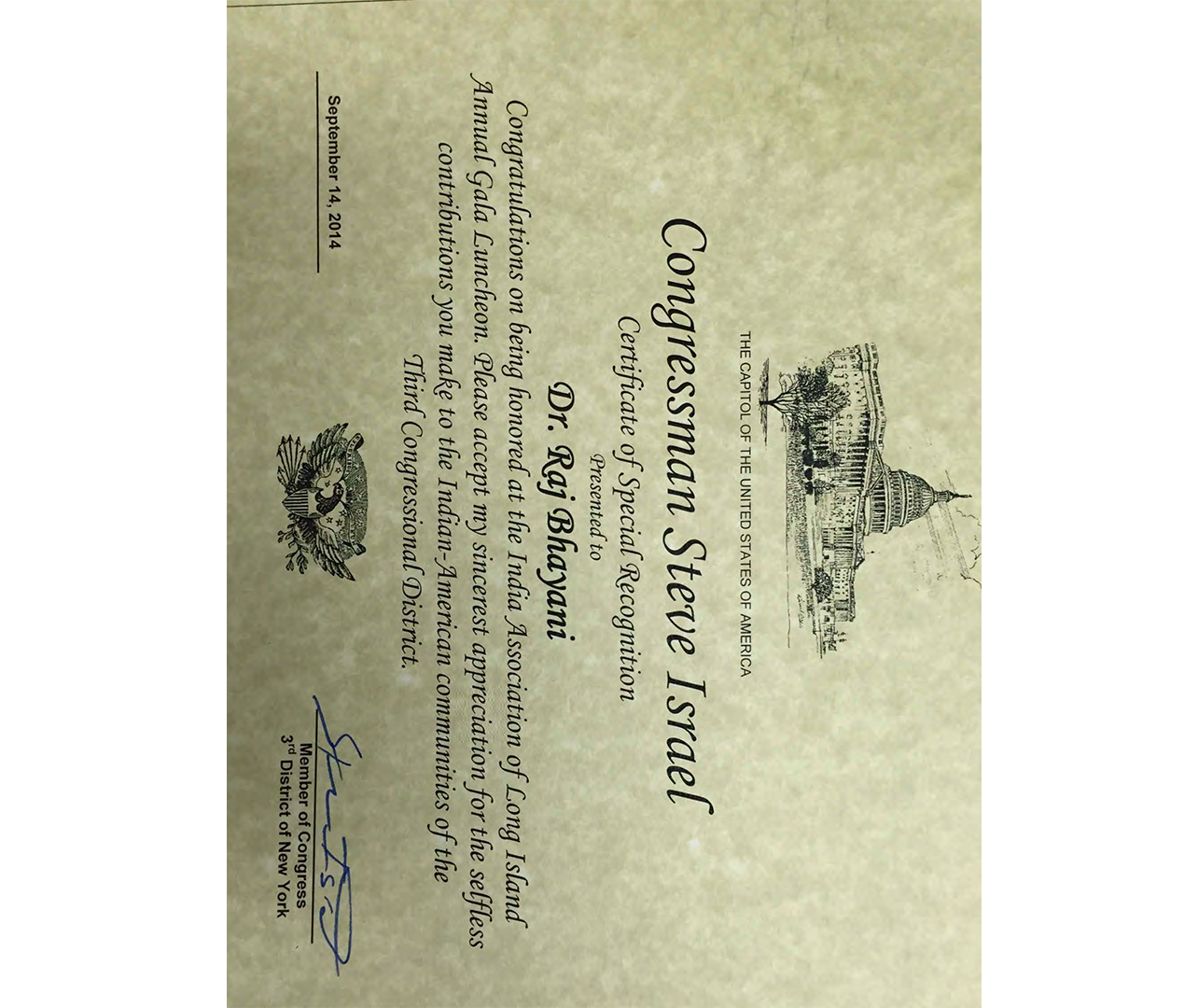 United States Congressman Certificate of Special Recognition Award2014Congressman from State of New YorkNRI Community Service
