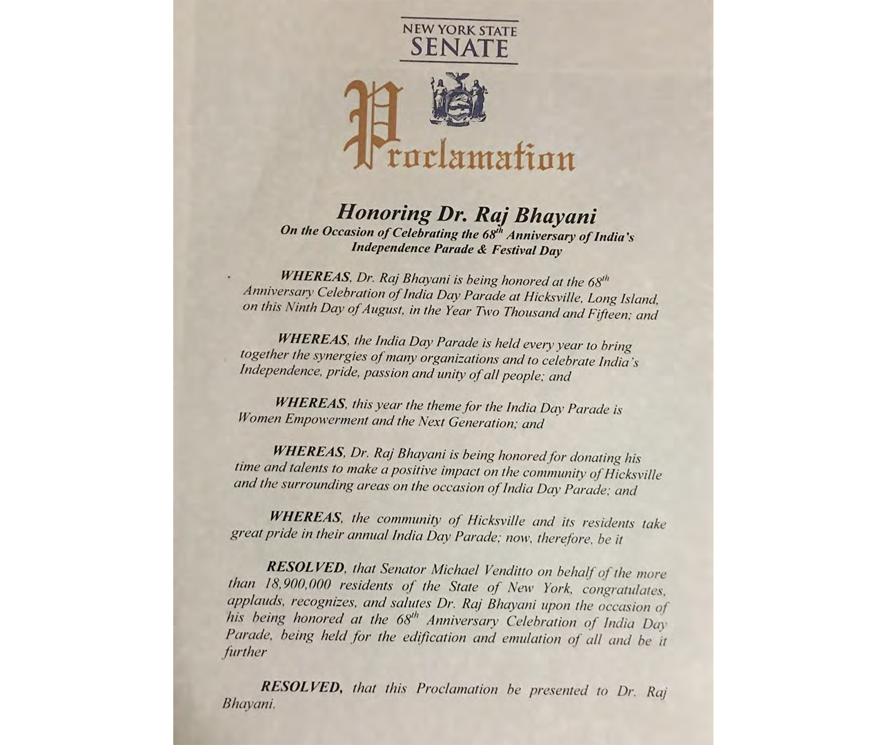 New York State Proclamation Award2014State Of New YorkNRI Community Service