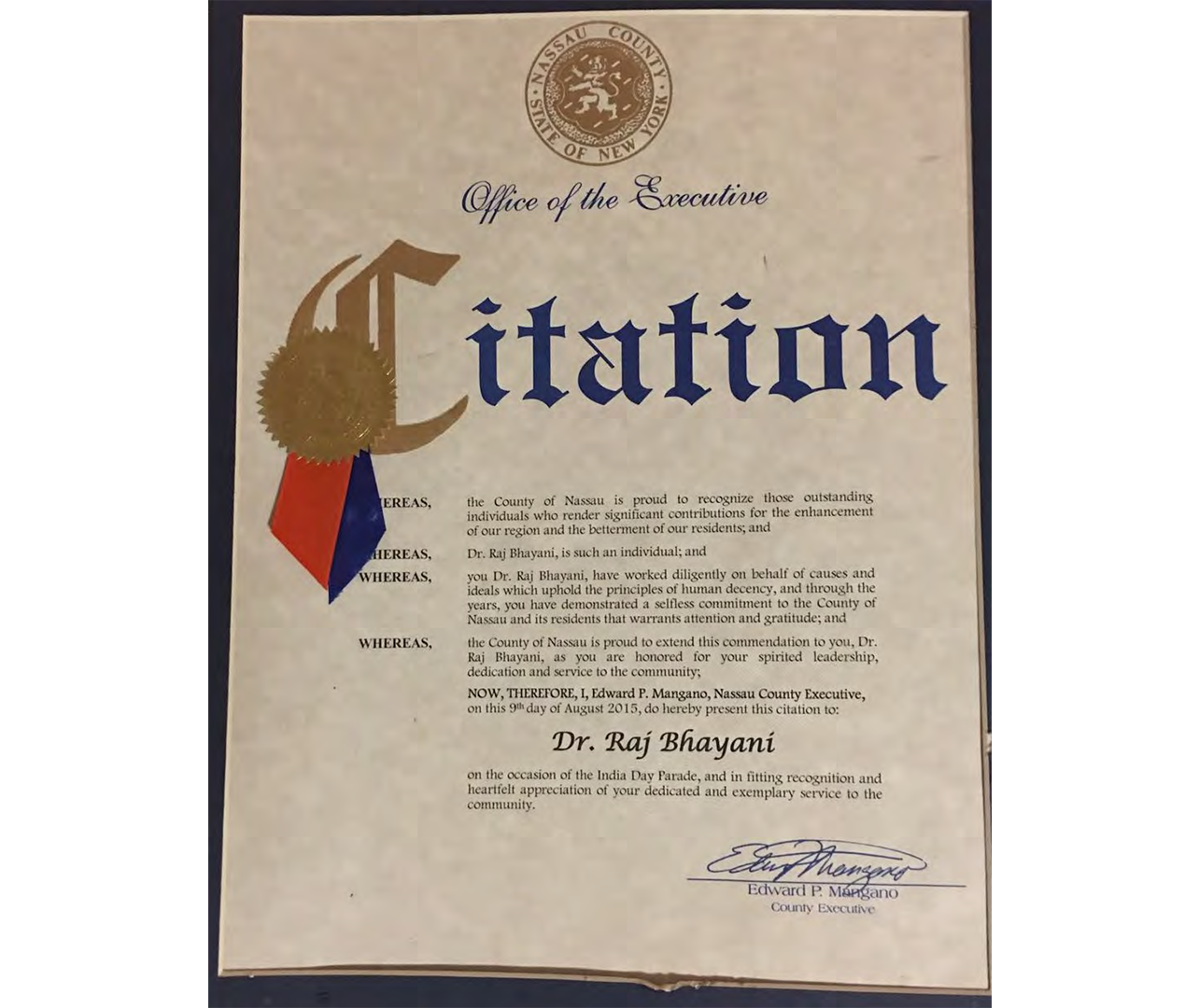 Nassau County Office of the Executive Award2015Nassau CountyNRI Community Service
