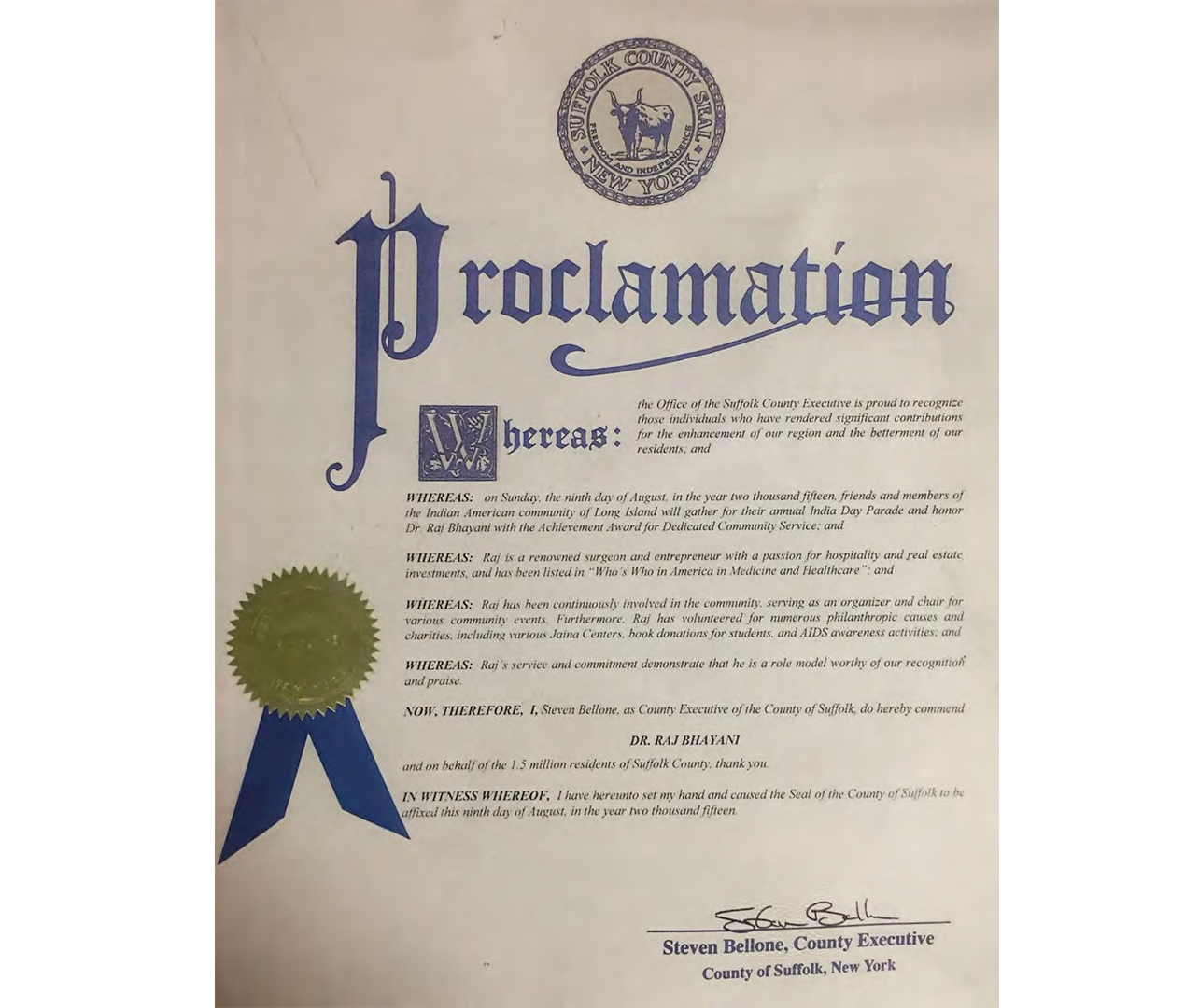 Suffolk County Legislature Citation Award2014Suffolk CountyNRI Community Service