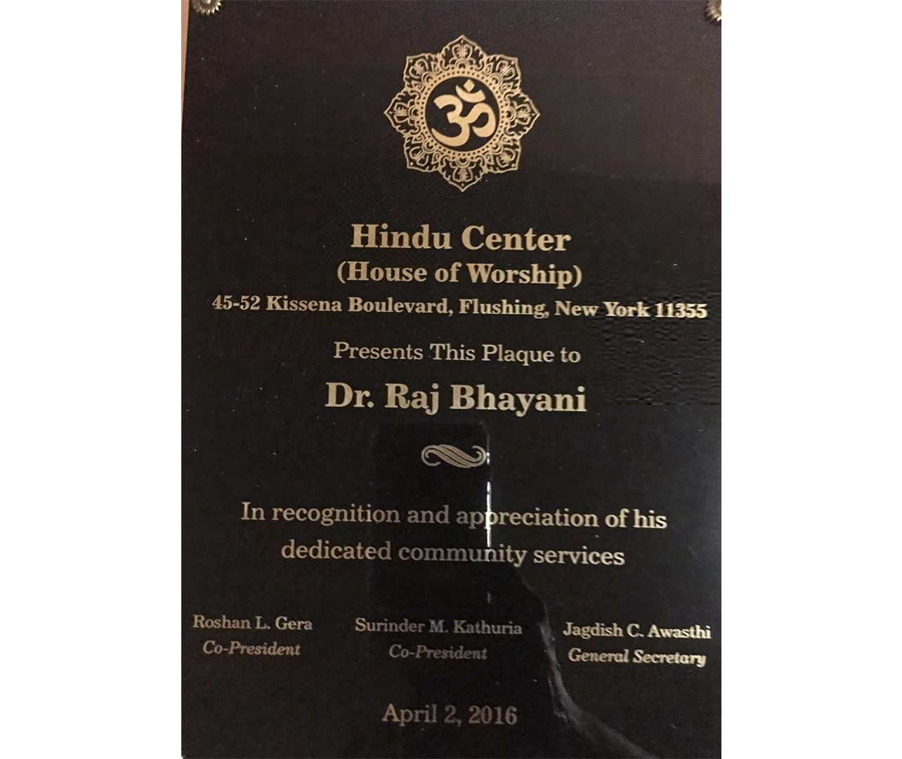 Special Recognition Award Hindu Centre2016Hindu Centre New YorkCommunity Service Hindu Cause