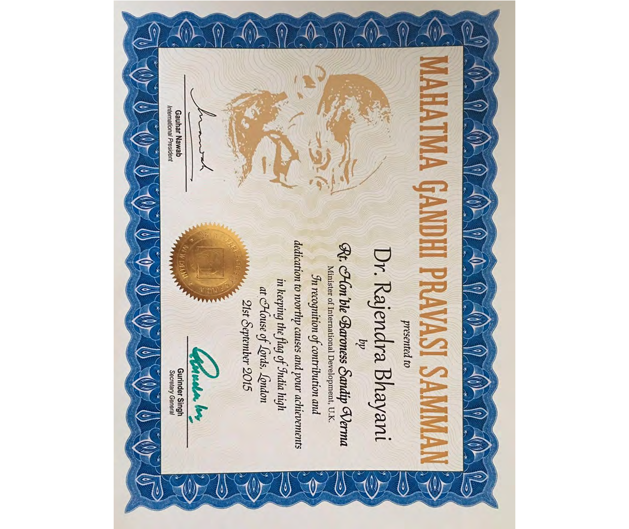 Mahatma Gandhi Pravasi Samman Award2015House of Lords London UKGlobal Philanthropy and Social Work